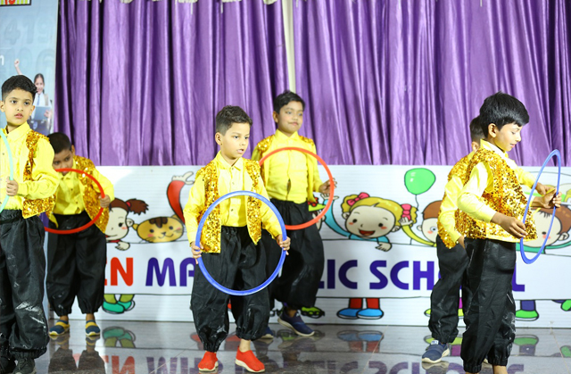 The School has good sports facilities, which include indoor and outdoor basketball courts, table tennis facilities. Opportunities for team games and physical training are facilitated by trained physical instructors and yoga teachers. Students practice yoga and pursue sports like table tennis, volleyball, basketball, badminton, throw ball and athletics. They also enjoy board games like carom and chess. The annual sports day is held to celebrate the spirit of sportsmanship